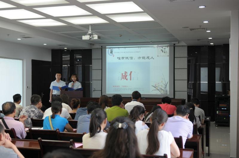 2016年7月21日下午,在我局225会议室,由洛阳市人社局主办,市创业贷款担保中心承办了一次以“诚实守信”为主题的道德讲堂活动。此次活动机关各支部、局属单位共有70多人参加,共分为6个环节,通过开场三问、诚信故事短片欣赏和向诚实守信楷模——姚多保学习,使大家对诚实守信有了更深的感悟和理解,“一饮一啄皆诚信、一言一行皆典范”,随着最后一个环节“送吉祥”,为大家送去了青花瓷餐具,活动取得圆满成功。希望我们人社局每一位成员要从自己做起,重守承诺,做文明的传播者,诚信的播种人。