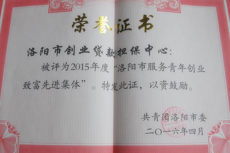 近期,洛阳市创业贷款担保中心荣获2015年度洛阳市服务青年创业致富先进集体。